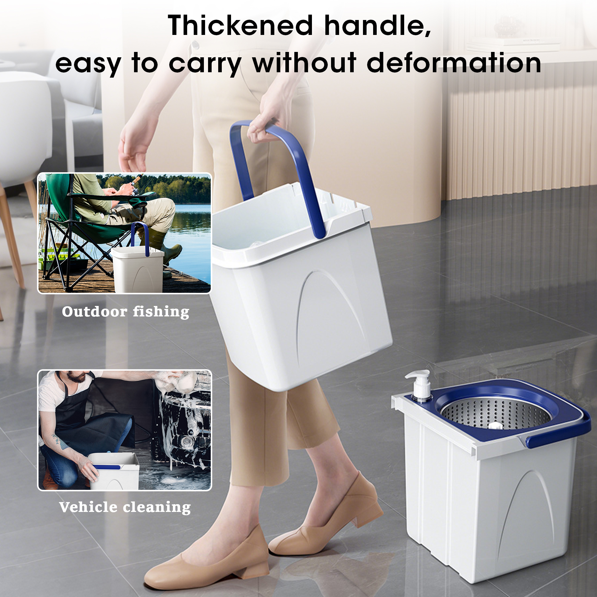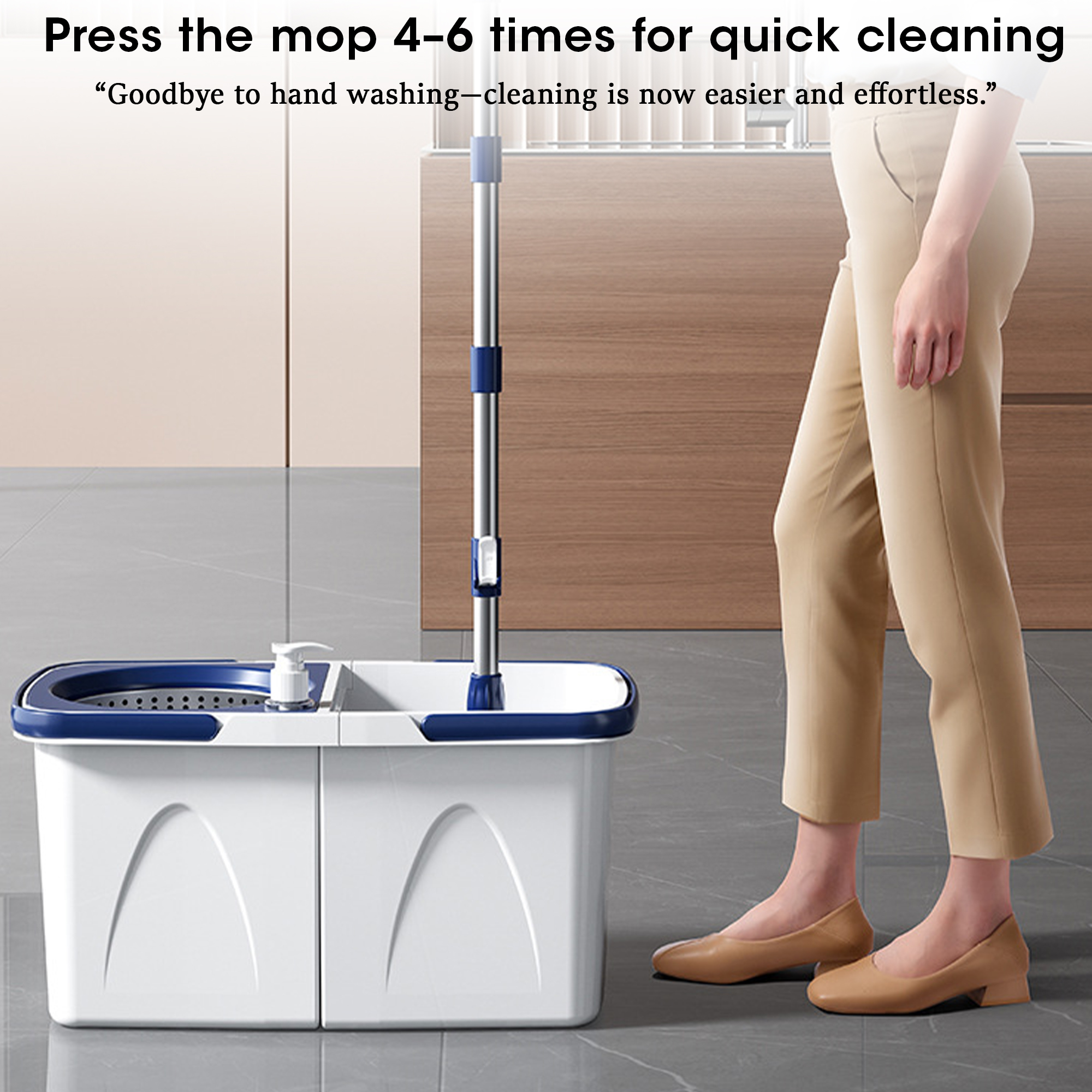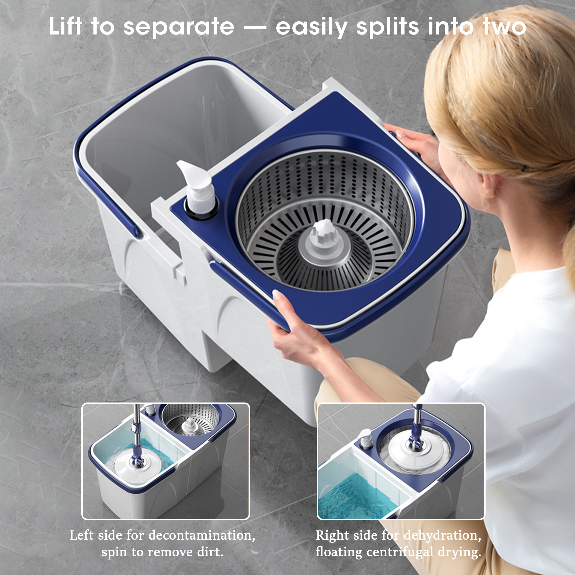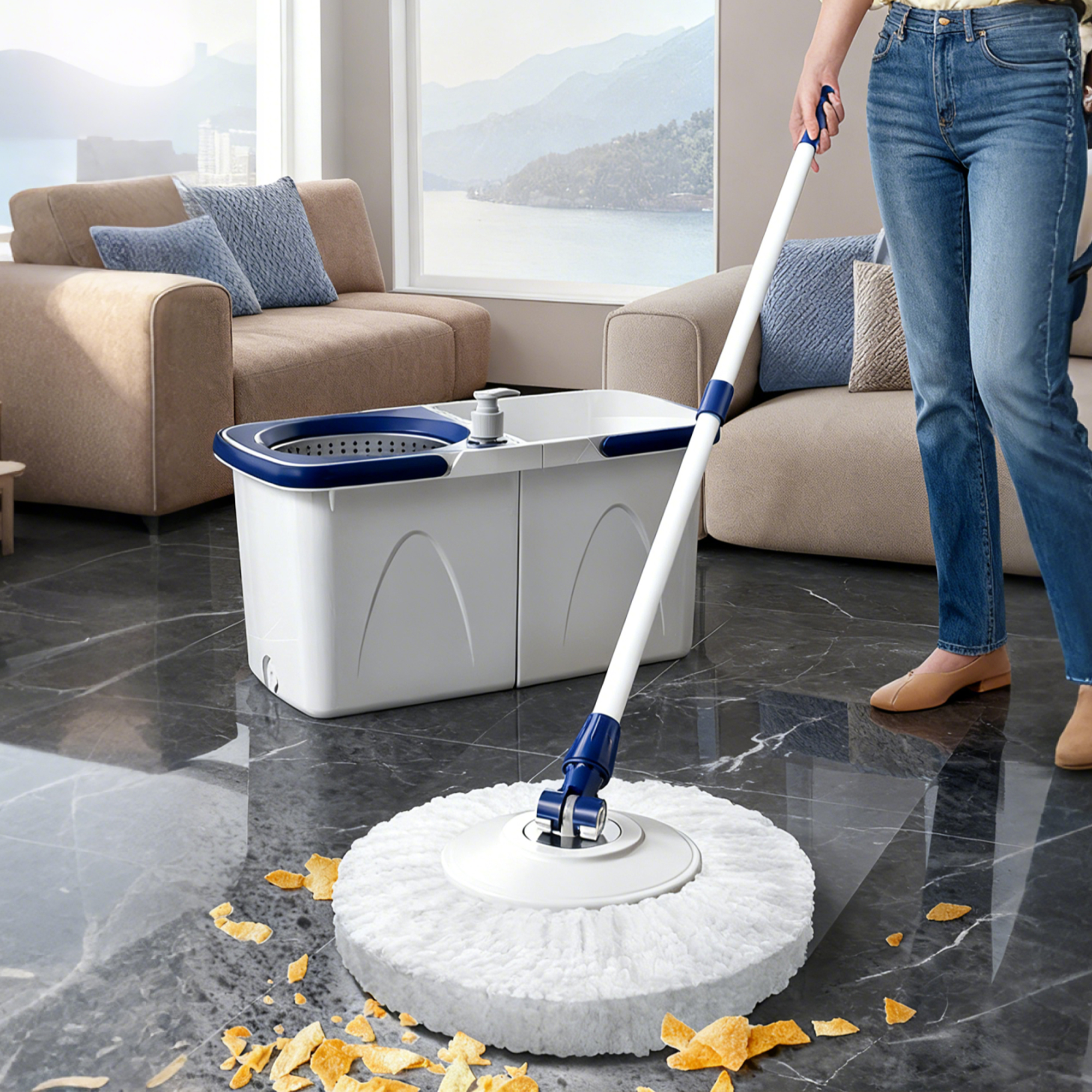 • Smart Mop Bucket with Dual-Drive 360 Spin Dry Stainless Steel Handle Eco-Friendly Hands-Free Design for Household Cleaning