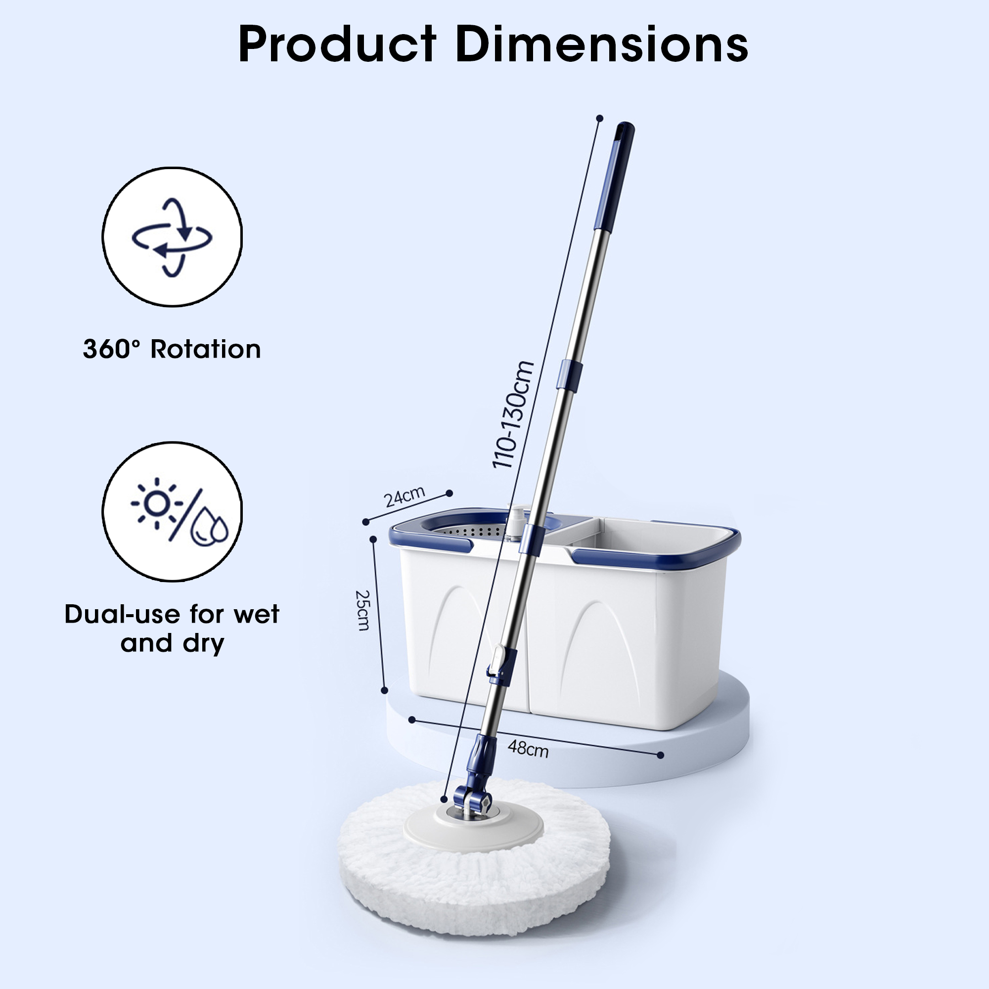 • Shape: Circular mop head with adjustable telescopic rod